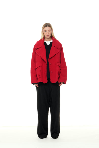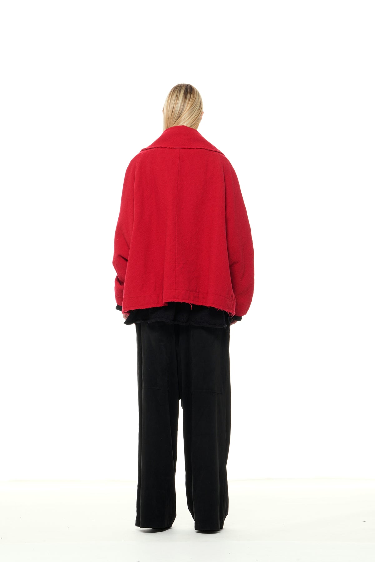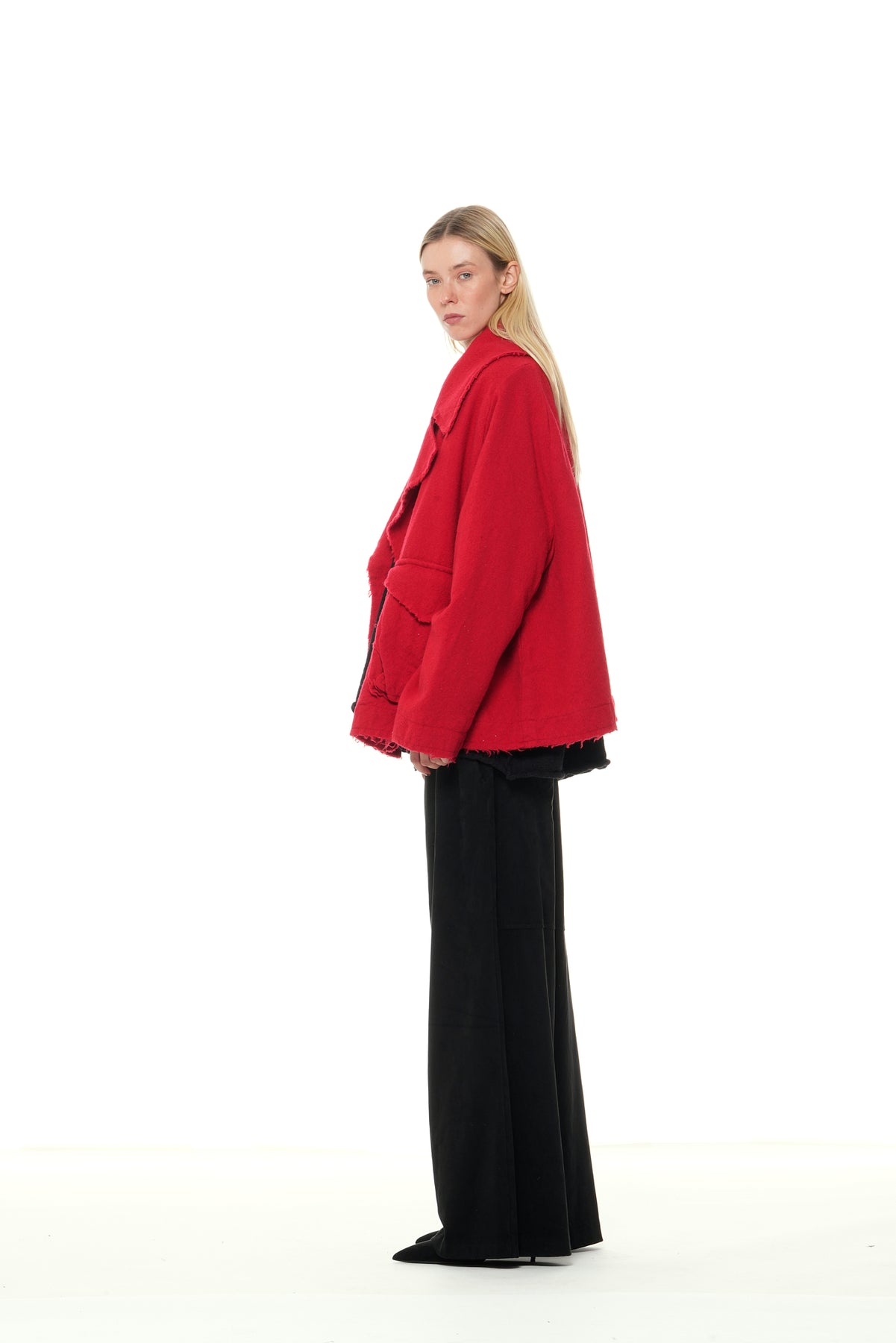 Il colletto tradizionale e l’abbottonatura frontale bilanciano l’estetica sperimentale, rendendola perfetta sia per look sofisticati che per outfit dal forte impatto fashion. Da indossare con pantaloni sartoriali o gonne a vita alta per uno stile deciso e moderno.