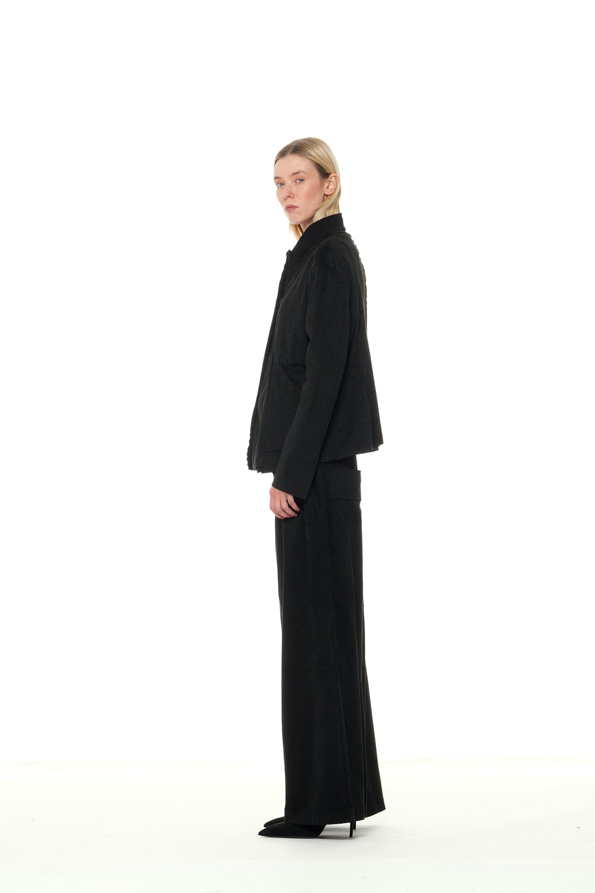 Con collo a camicia e chiusura frontale coperta, unisce praticità e carattere contemporaneo. Perfetta per look urbani e minimal, da abbinare a pantaloni coordinati o denim per un outfit deciso e moderno.