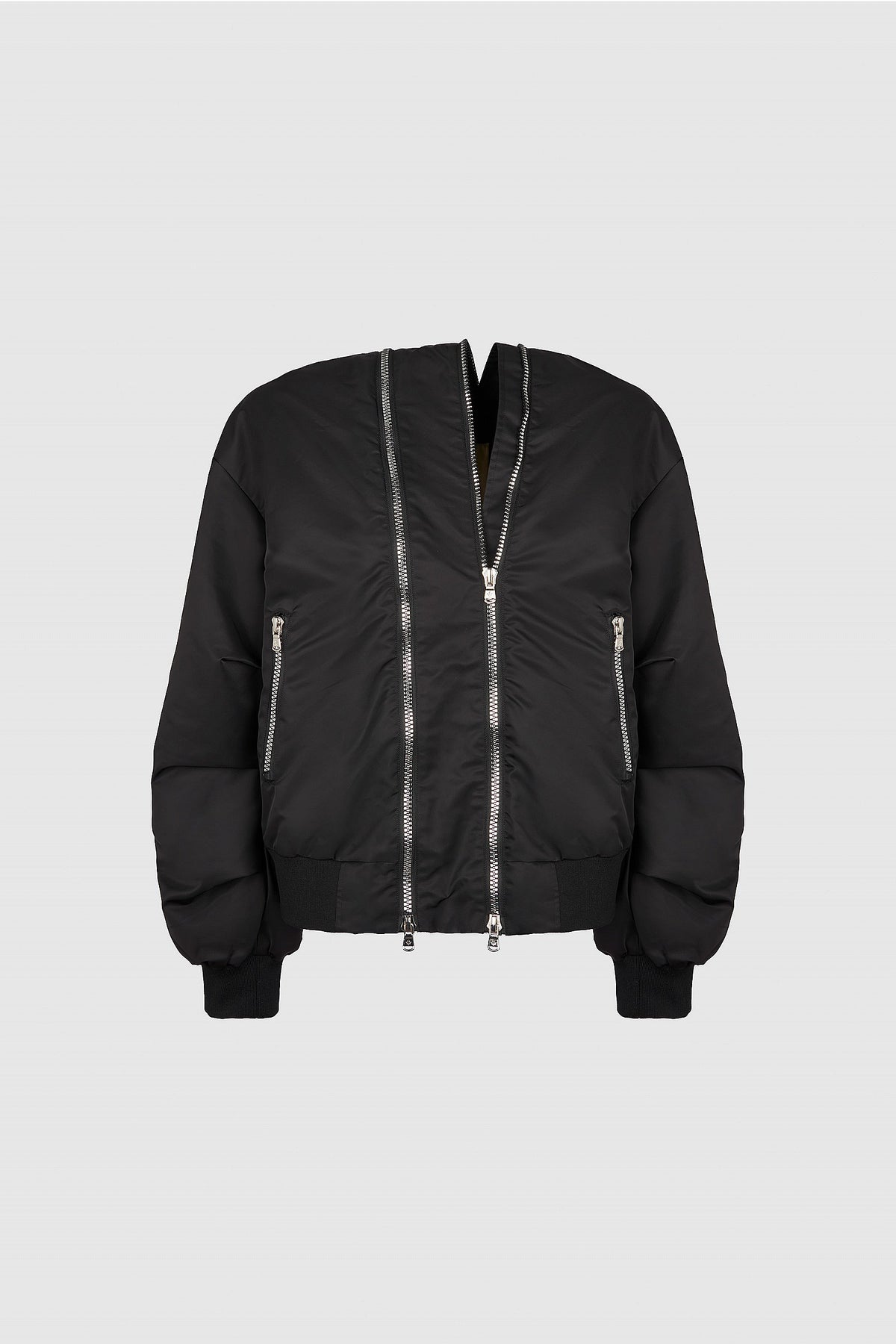 Realizzato in tessuto leggero ma strutturato, presenta chiusura frontale con zip, collo, polsini e fondo in maglia elasticizzata per una vestibilità confortevole e definita. Il design essenziale lo rende un passe-partout trasversale, capace di dialogare sia con outfit casual che con styling più sofisticati.