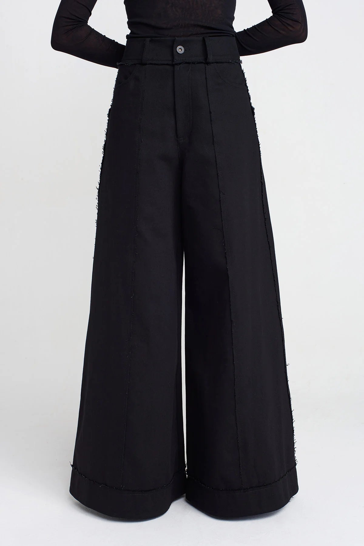 Pantaloni palazzo neri con pannelli e dettagli raw-cut