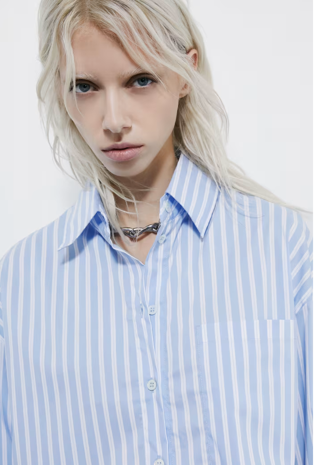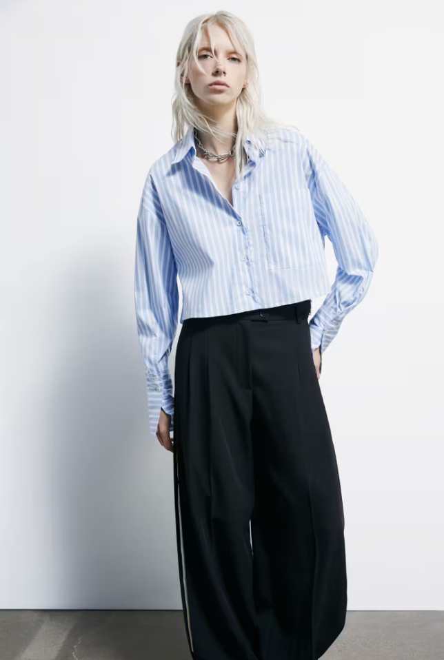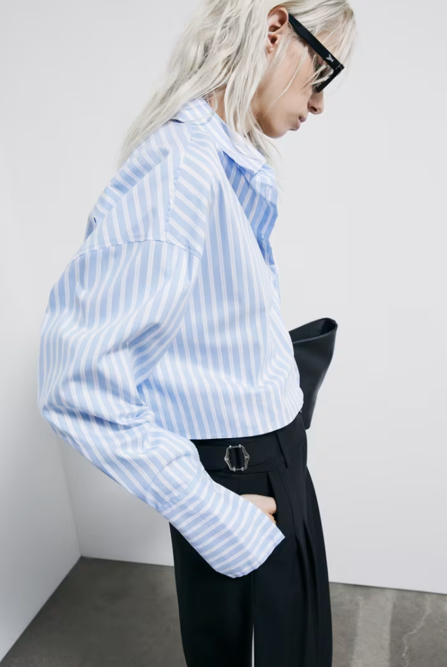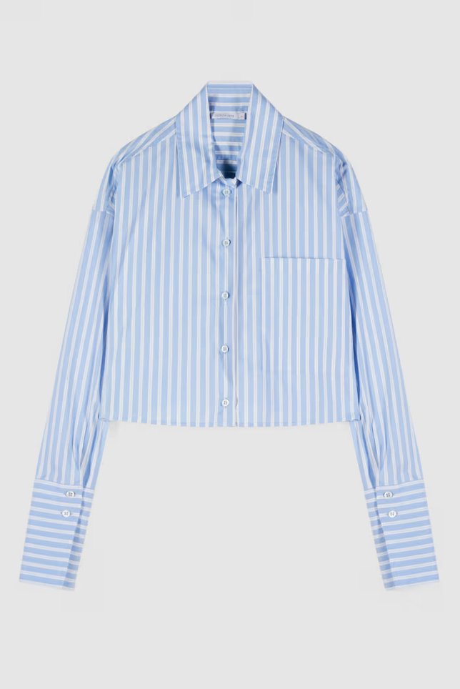 Camicia a righe in popeline di cotone con fit morbido e taglio cropped - un essenziale del guardaroba rivisitato per outfit versatili con allure urban glam.